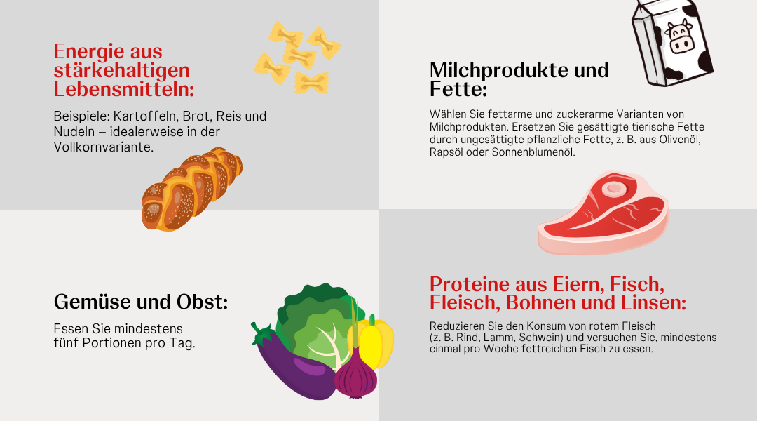 Eine ausgewogene Ernährung ist ein wichtiger Schritt, um Ihren Körper zu stärken und besser mit der chronischen lymphatischen Leukämie (CLL) sowie den Behandlungen umgehen zu können. Geben Sie Ihrem Körper die Energie, die er benötigt. Wenn Ihnen grosse Mahlzeiten schwerfallen, versuchen Sie häufiger kleinere Portionen zu essen. Auch nahrhafte Getränke können eine gute Ergänzung sein, wenn der Appetit gering ist oder das Essen mühsam erscheint.