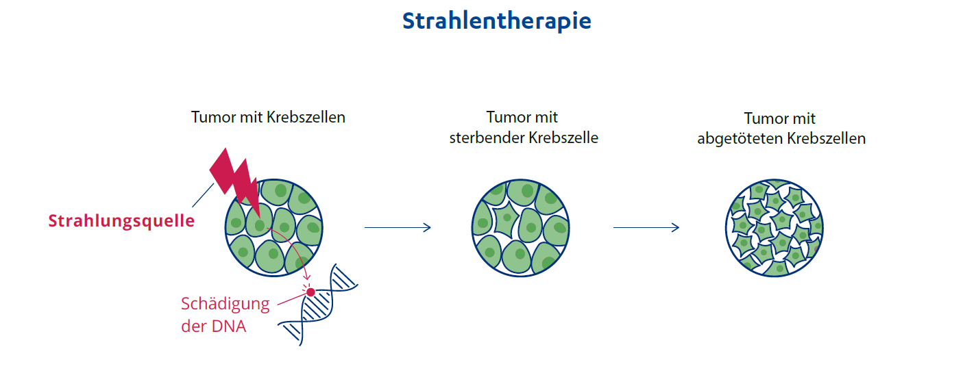 Die Strahlen schädigen die DNA in den Krebszellen und töten sie dadurch ab.